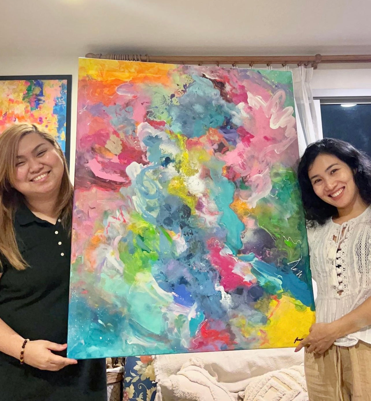 I was commissioned by Kim to paint a joyful piece to brighten up her room. After the delivery, she called me up to tell me that she really loved how the painting truly brought on new energy into her room like magic
