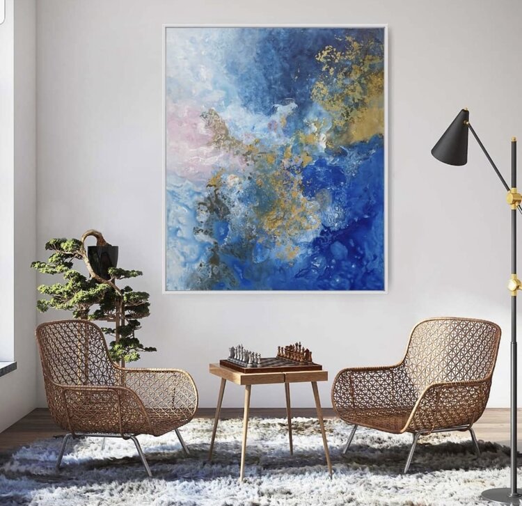 - Shipment for all artwork under the categority will be in a flat canvas 'over' wooden frame and ready to hang mode