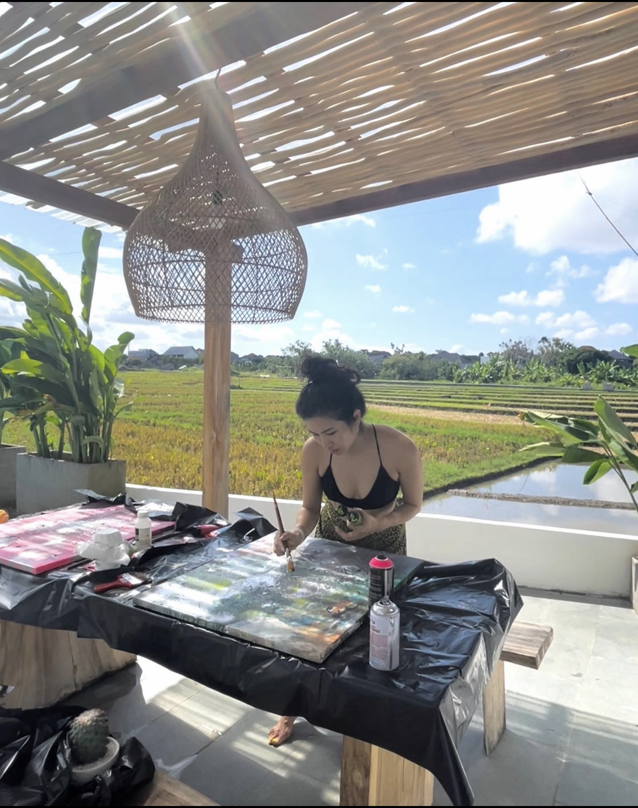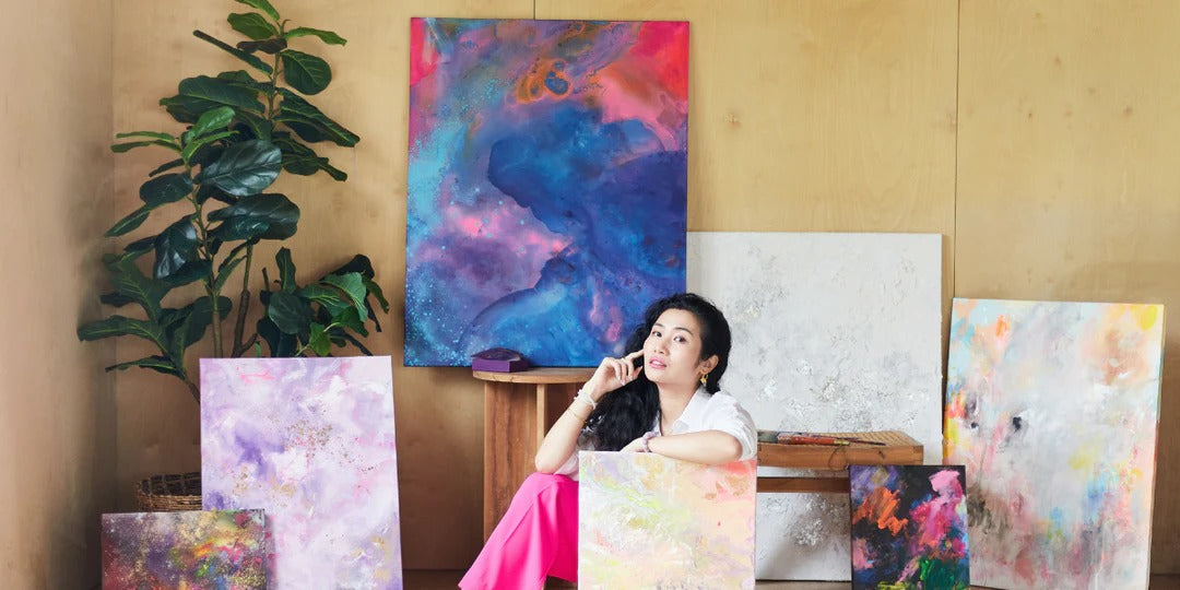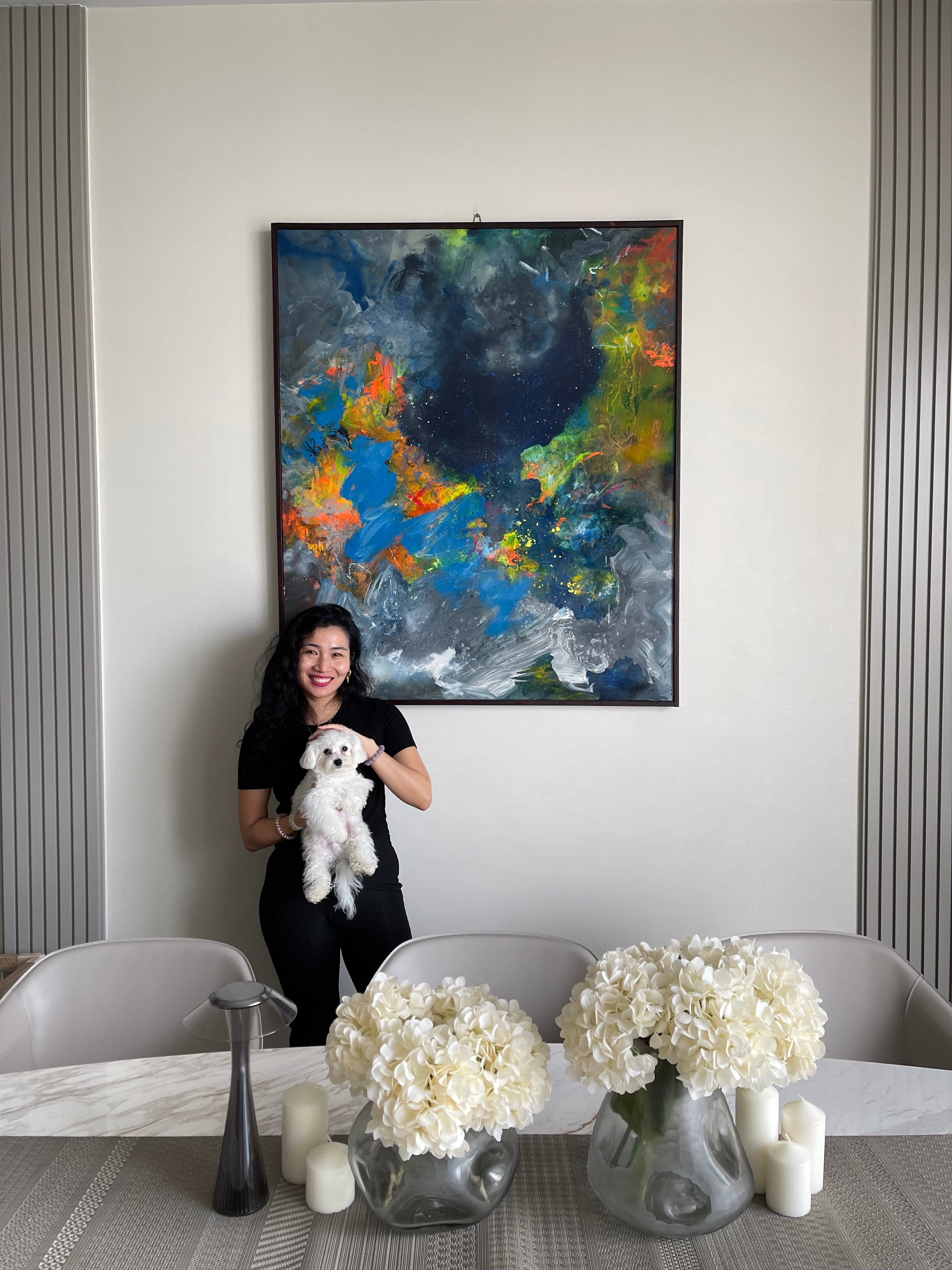 Back in 2019, I stumbled upon abstract painting and fell in love with the process of abstract art creation. This is where I finally found a space where I could fully express my love for vibrant color mixed with spirituality. It became my sanctuary, a place where I could simply be and unleash my creativity without limitation. Each art piece is a portal infused with vibrant color, spiritual frequency, and sacred intention. My mission is to remind the world that art is vibration. A language that speaks from the heart. It is a ceremony of the soul. A return to oneself.